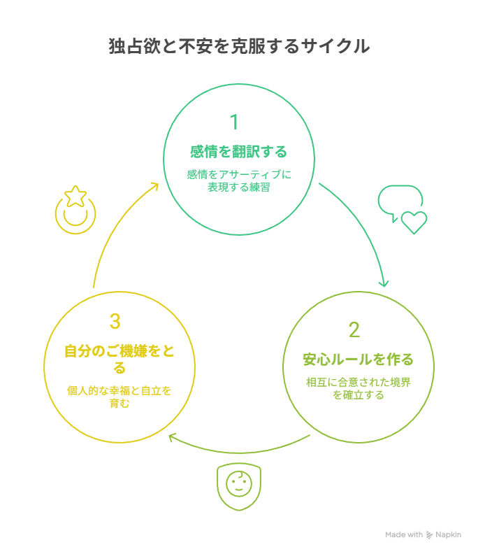 このコミュニケーション方法を身につけることが、独占欲や不安という課題に対する最も有効な解決策の一つです。
